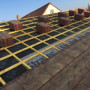 Les charpentes de toitures sont souvent faites de fermes pour celles en pentes et de solives comme un plancher pour une toiture plate. Les fermes du toit, ou chevrons, forment le squelette de la couverture et sont recouverts de contre-plaqué et du revêtement à toiture.